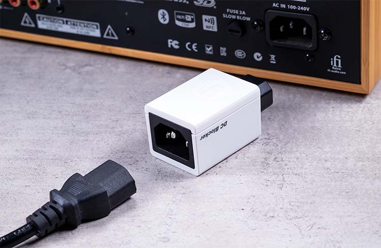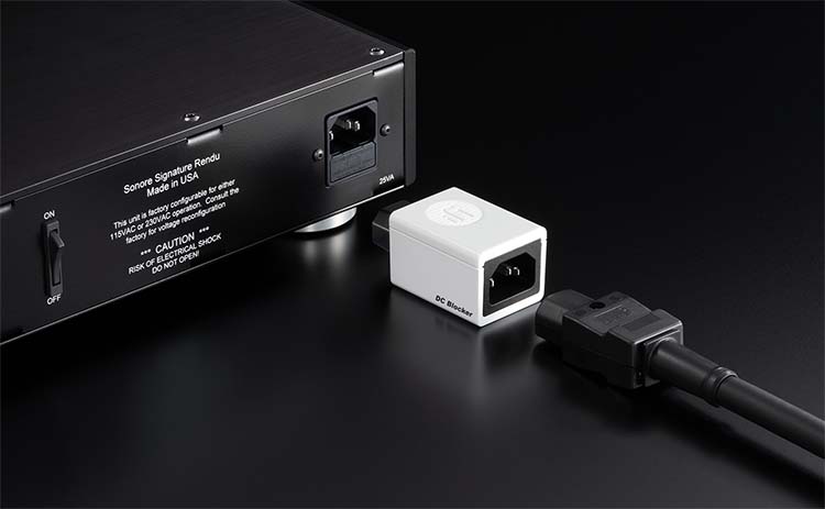 アンプが大きくなればなるほど、残留直流(DC)電圧の影響を受けやすいトロイダルトランスも大きくなるのが普通です。機器の電源インレットにDC Blockerを追加することで、直流の侵入を防ぐことができます。