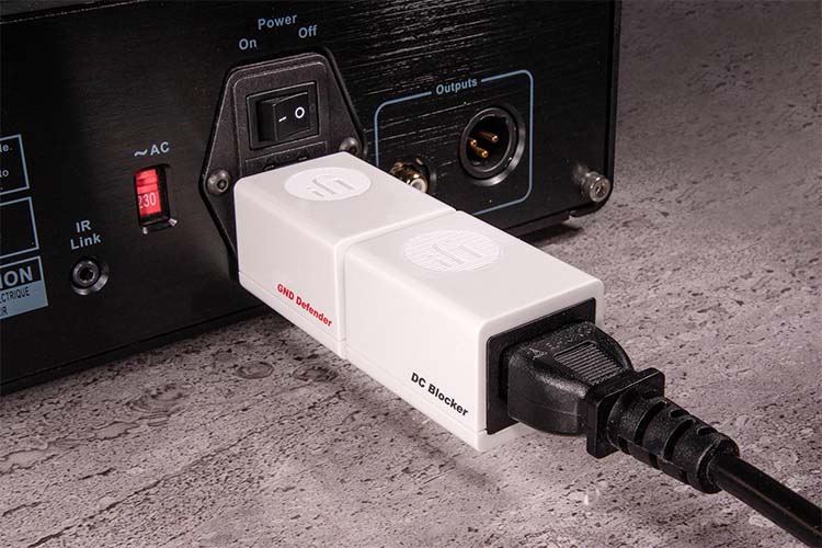 GND DefenderとDC Blocker、この2つの小さなデバイスは、68x37x32mmと同じサイズ、同じ入出力で見た目は似ていますが、ハム音の原因となる異なる問題に対処するために設計されています。一方をオーディオ機器の背面にある電源インレットに接続し、もう一方にお使いの電源ケーブルを取り付けます。単体でも、あるいはGND DefenderとDC Blockerを組わせても使用でき、解決したい問題に応じて使い分けることができます。