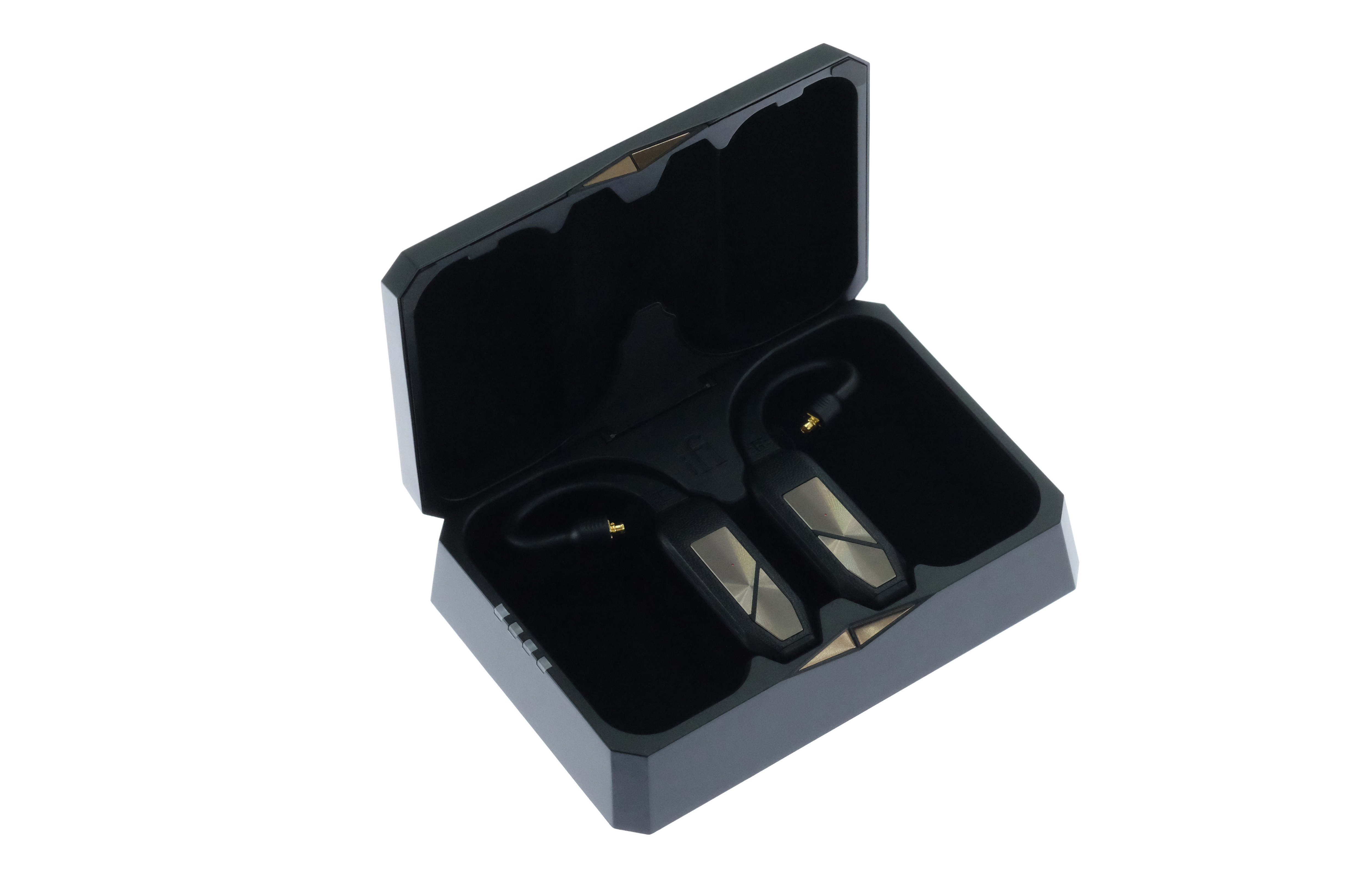 GO podには巧妙なデザインの充電ケースが付属しています。内部の収納部分にソフトな素材を使用し、アダプター自体はもちろん、接続されたIEMを収納するのに十分なスペースを確保しています。