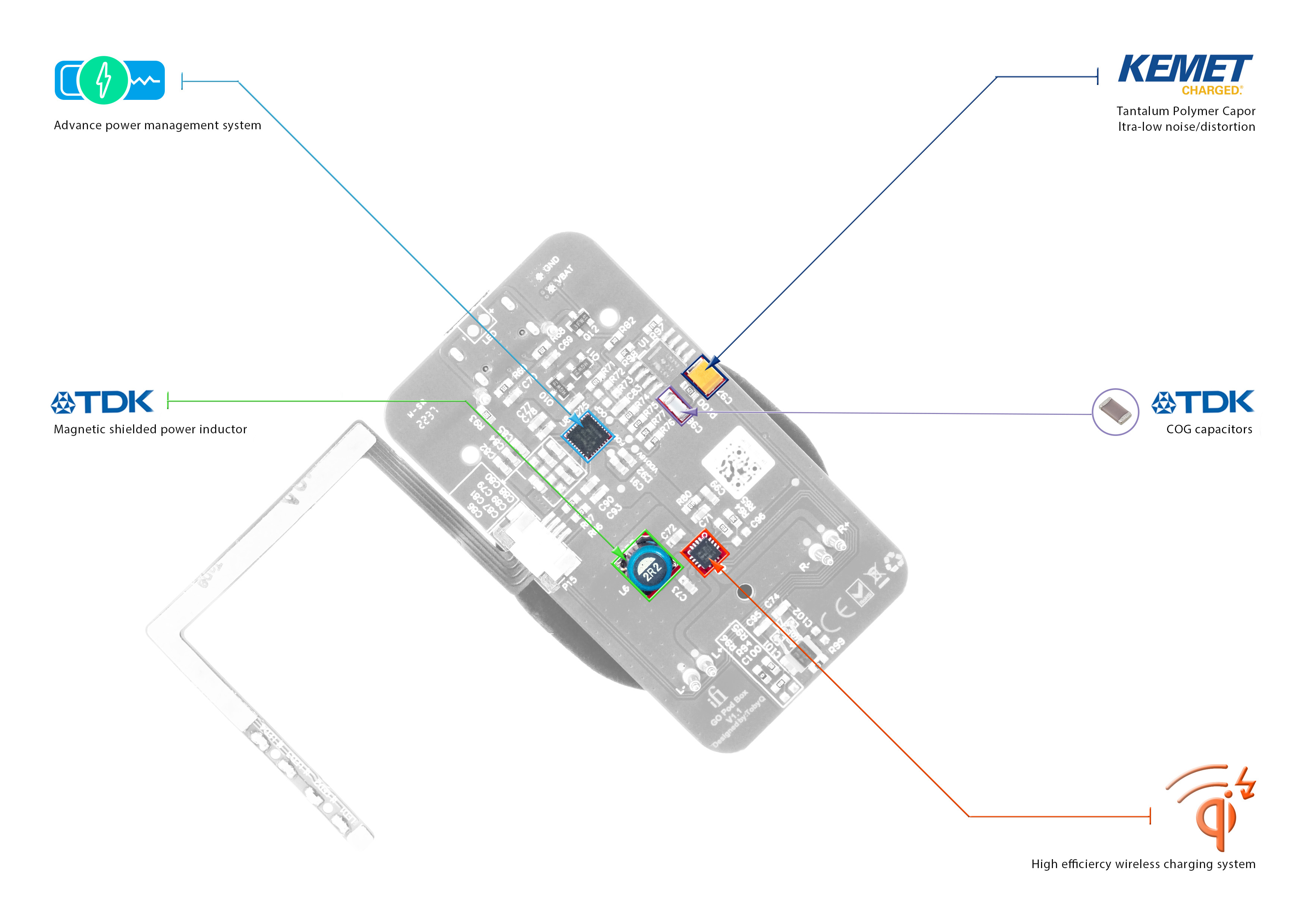 私たちは、回路設計のすべてに、個別のハイグレードな部品を使用していますが、それはGO podの場合も同じです。TDKのC0G多層セラミック・キャパシターや、太陽誘電やムラタのインダクターが、低ESR(等価直列抵抗)や高いリニアリティーを実現し、音質にすばらしい恩恵を与えているのです。