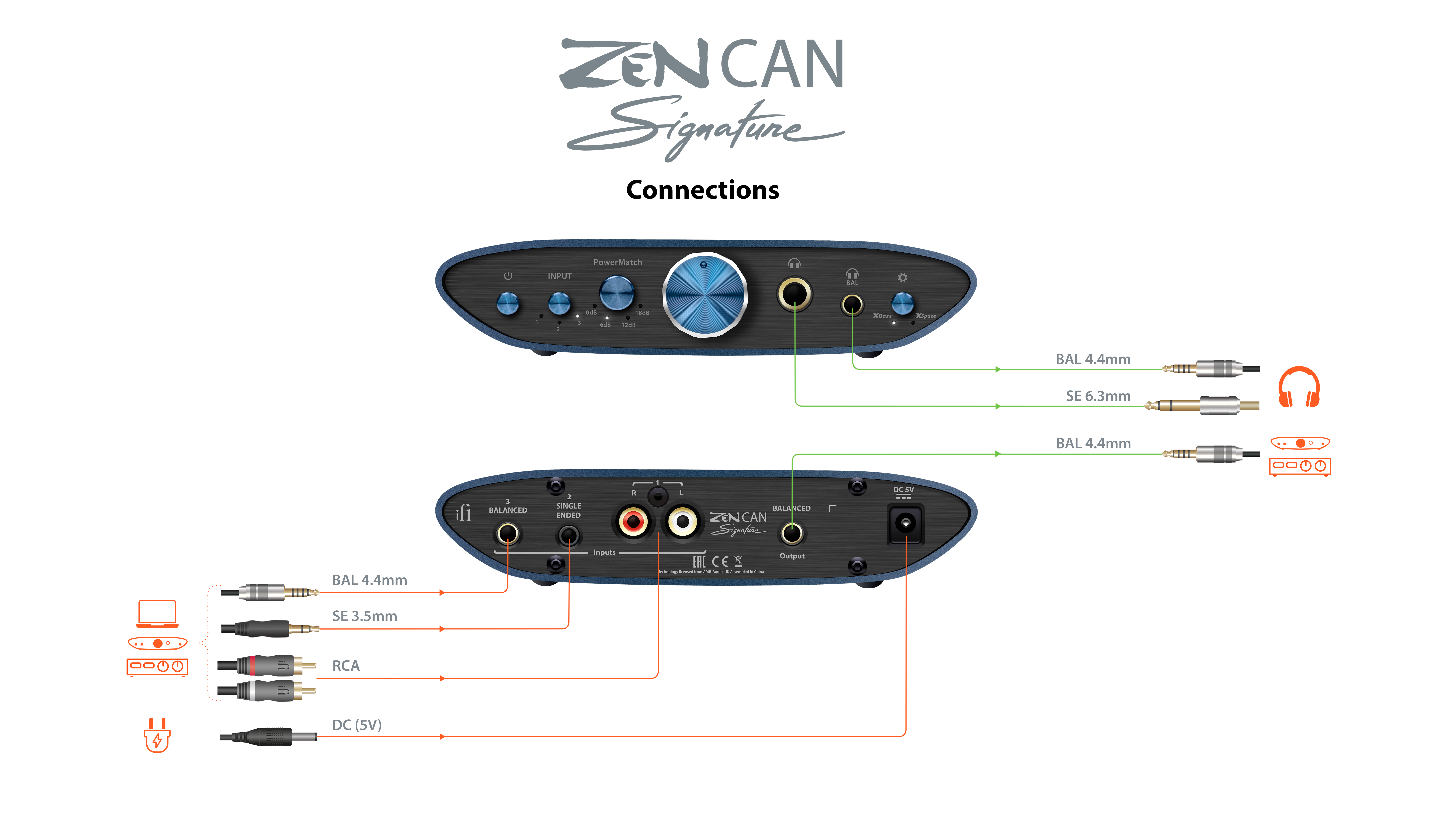 ZEN CAN Signature Standardは、ステレオRCA、3.5mmシングルエンド、4.4mmバランスなど、さまざまな入力オプションを備えており、ノートPCや電話、DACとの接続が可能です。