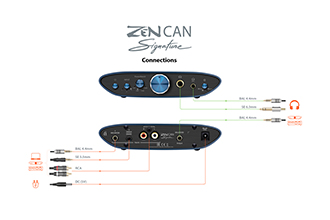 また、4.4mm-XLRアダプターを介してアクティブ・スピーカーと接続するのに最適なアナログ・バランス出力も背面パネルに装備しています。ZEN CAN Signature Standardはフルバランス、デュアルモノ回路設計のため、この出力オプションを推奨します。