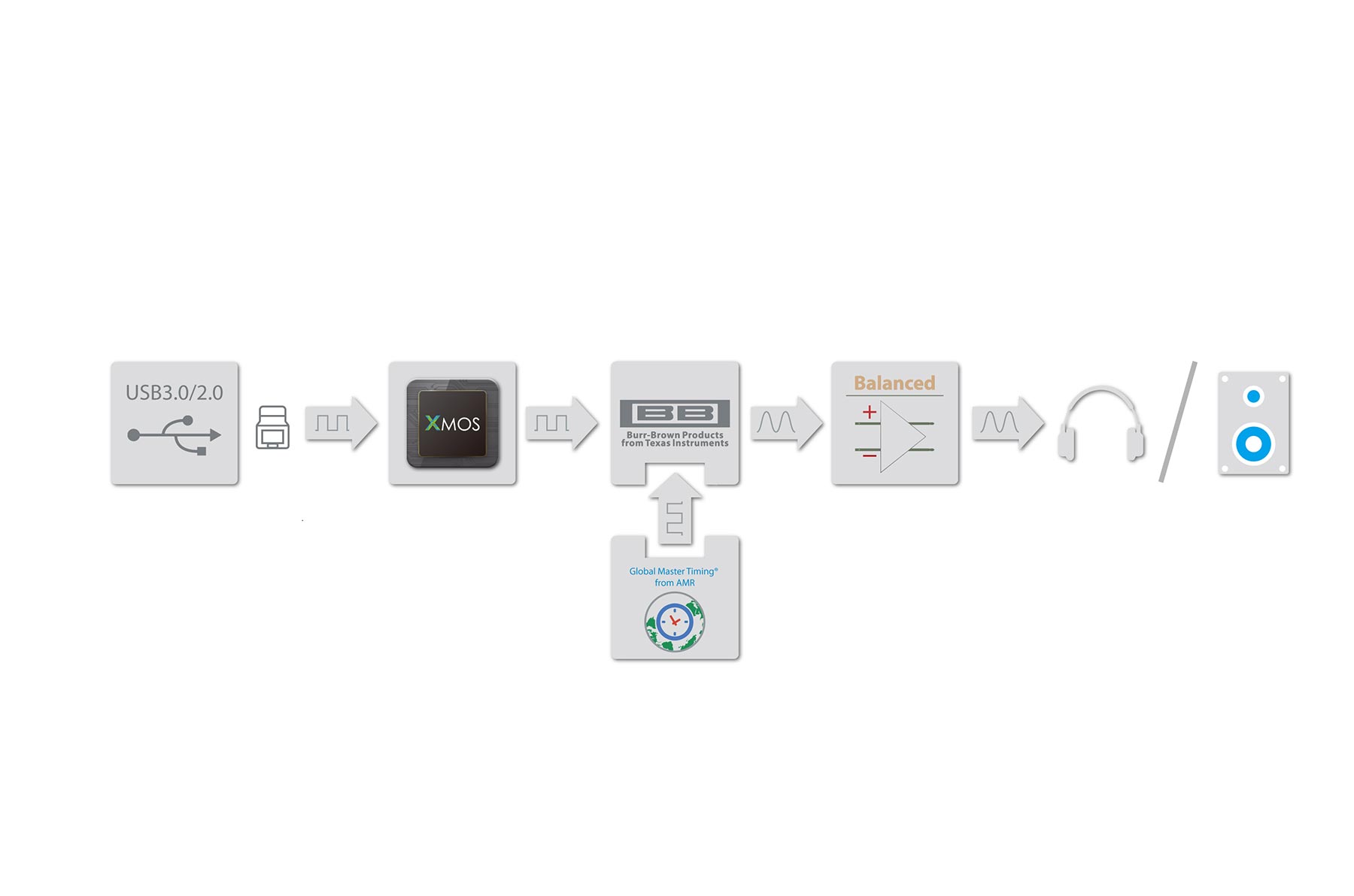 バーブラウンの「True Native トゥルー・ネイティブ」チップセットを用いているということは、ファイル・フォーマットが変えられることなく「ビットパーフェクト」のままであることを意味します。録音時のフォーマットでアーティストが意図した音楽をそのまま聴くことができるということです。