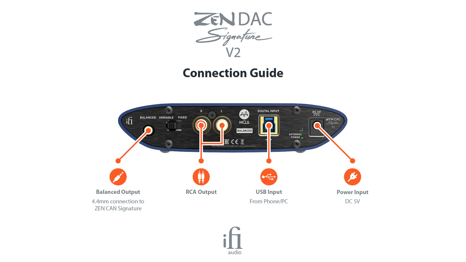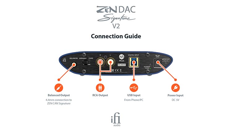 バランス入力端子を備えたアンプやアクティブ・スピーカーに接続すると(4.4mmペンタコンまたは4.4mm→XLRケーブル経由でのステレオXLR入力)、ZEN DAC Signature V2のフルバランス回路設計の利点をフルに耳で聞くことができます。あなたの魂に語りかけてくるでしょう。